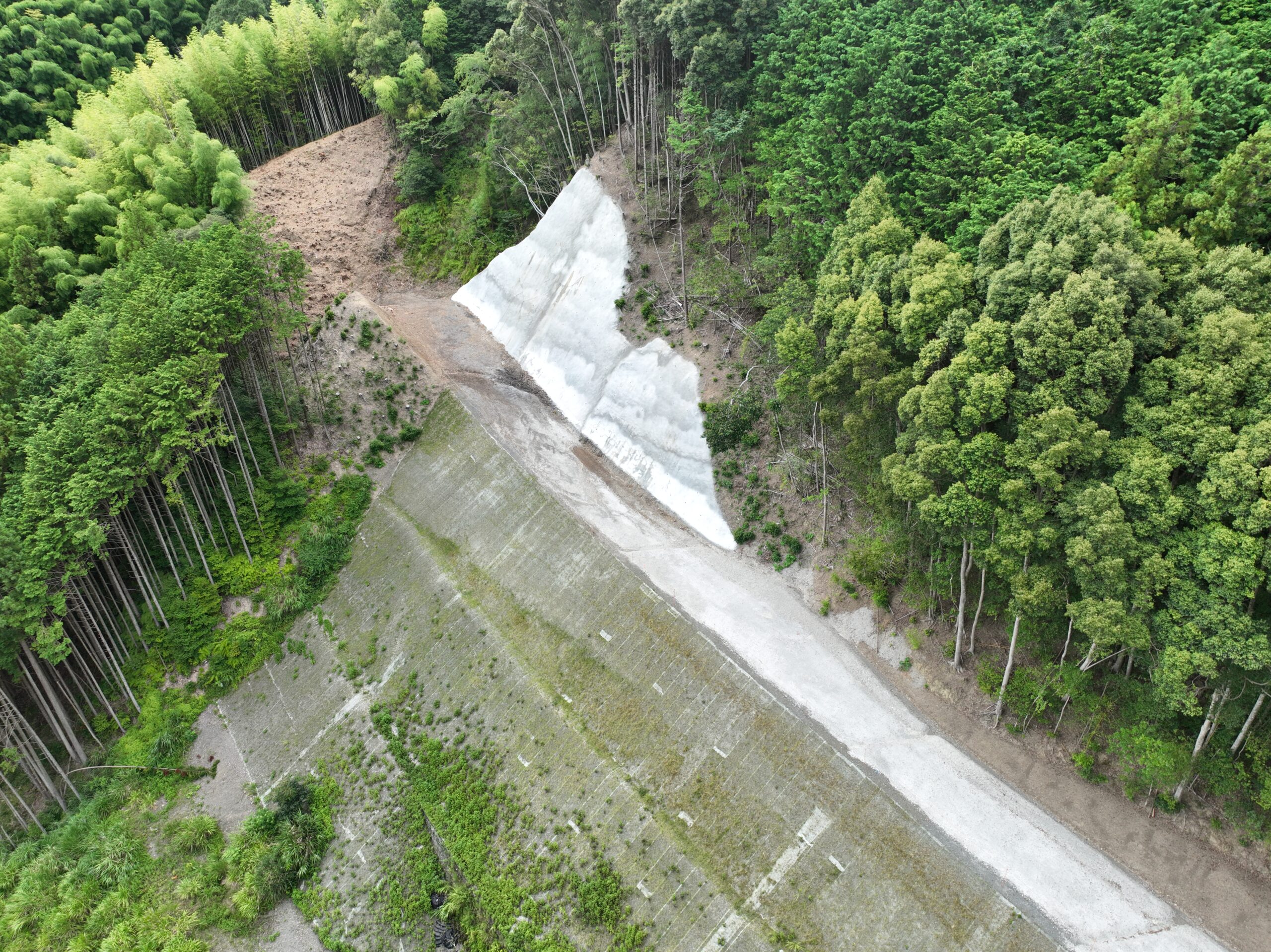現場は高低差があり掘削面の崩壊や地滑りの二次災害が発生しないよう注意をし工事を