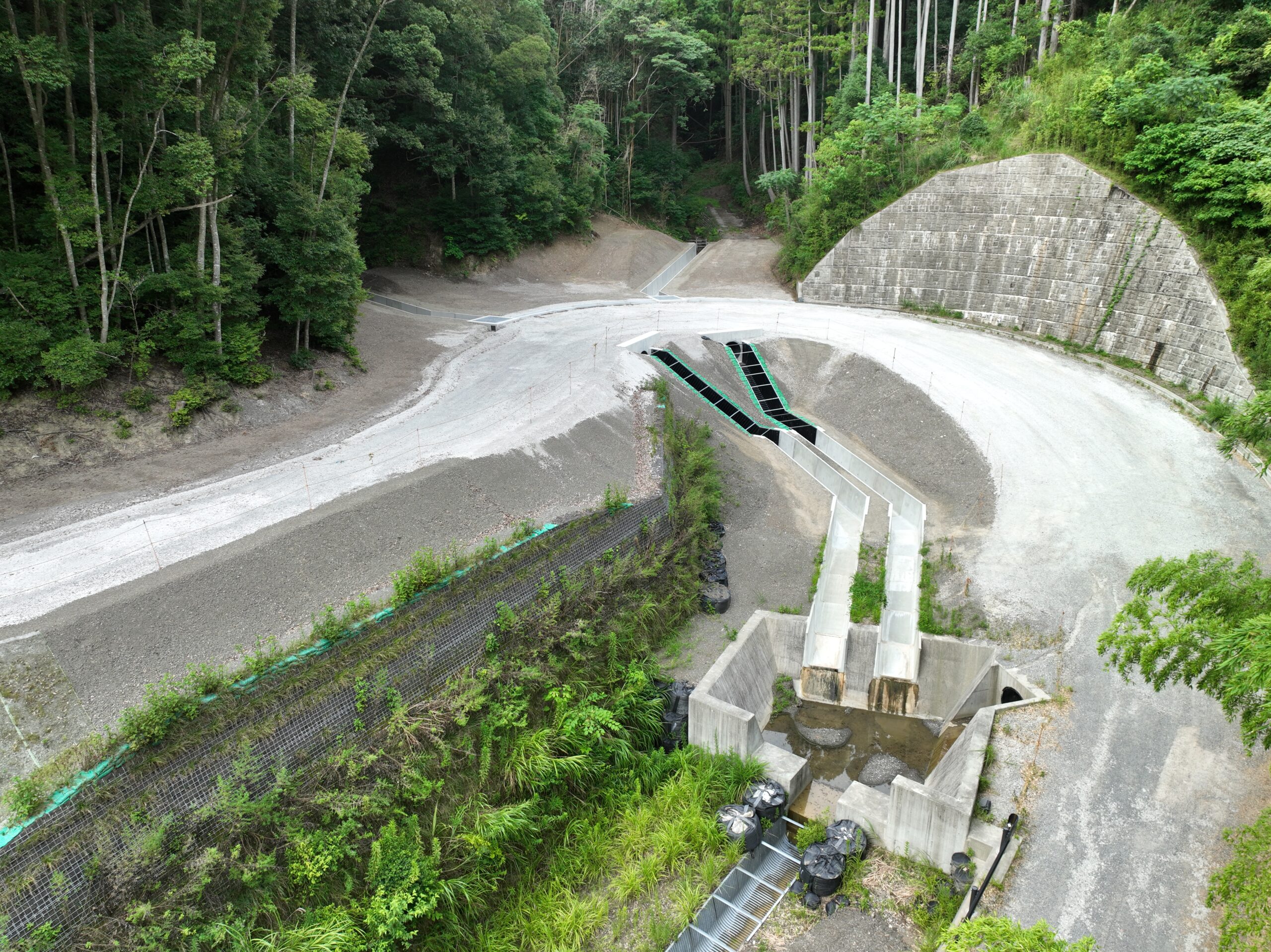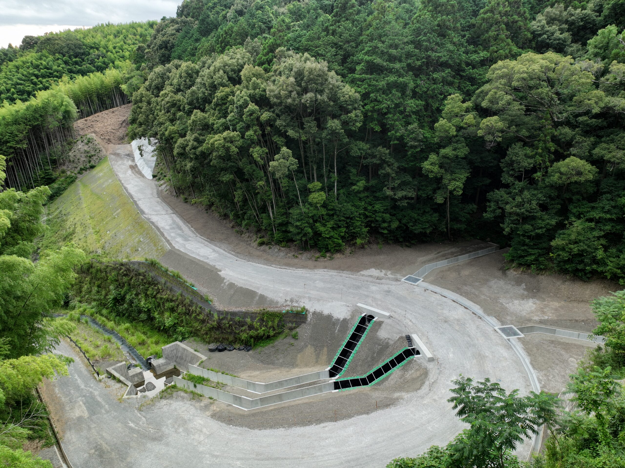 農道開設工事のうち、掘削工・路体路床盛土工・補強土壁工・排水構造物工を行いました。