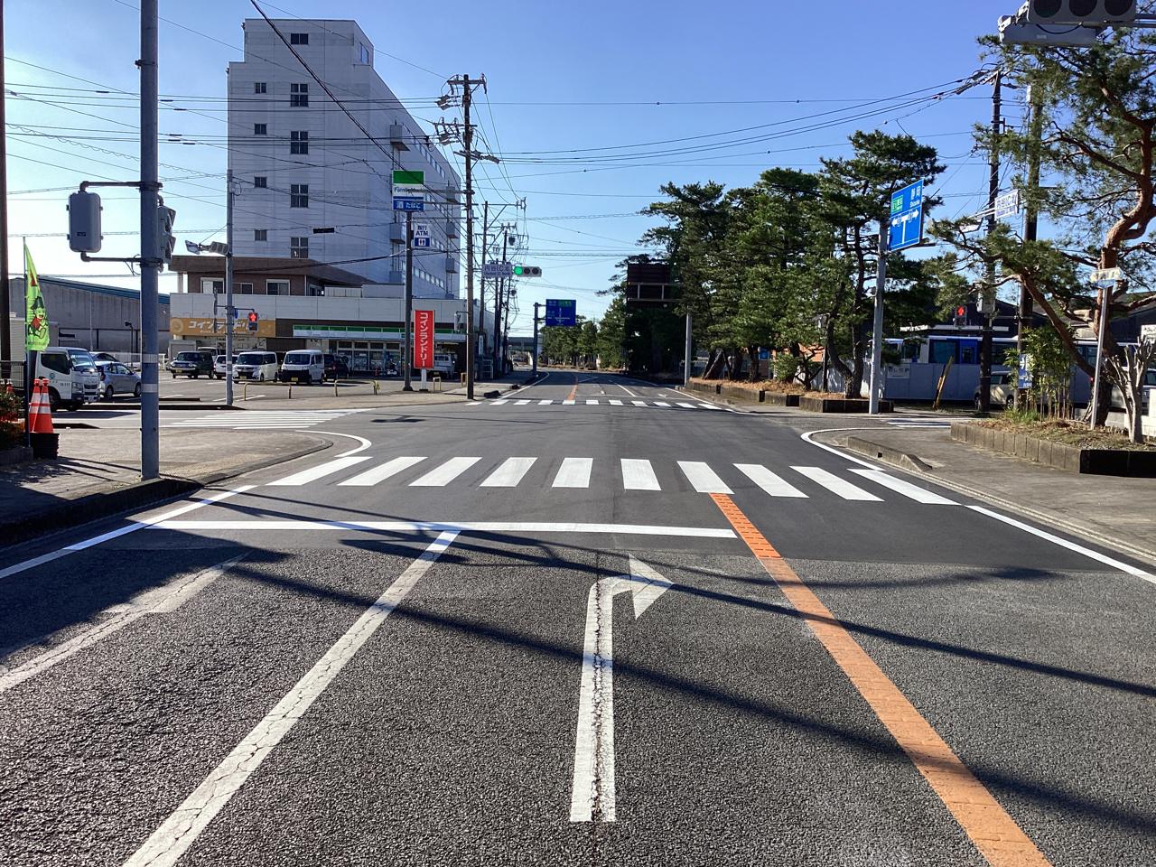 島田岡部線・善左衛門藤枝停車場線は交通量が多いため夜間作業でしたが