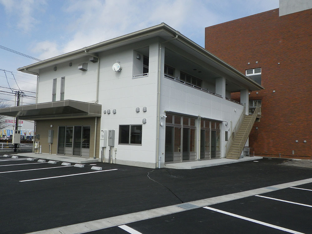 こちらの建物は障害者就労支援施設の新築工事です。 心愛志太様として2棟目の施工となりました。 打合せを密に行い、利用しやすい施設に工期内に変更対応が出来ました。 また、前面道路が非常に交通量が多く周囲に病院等施設が隣接していましたが、適切に対応し完成させました。